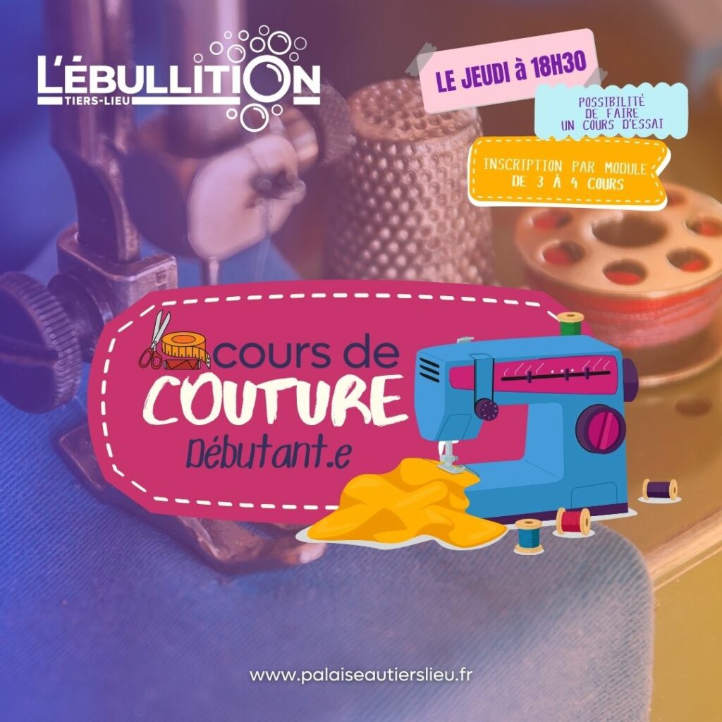 Si vous avez envie d’apprendre à coudre,ces cours débutant.es sont fait pour vous. Dans une ambiance conviviale, en petit groupe, Magalie vous proposera des ouvrages simples que vous pourrez personnaliser. Une bonne occasion de rencontrer de nouvelles personnes, de prendre du temps pour soi, de s’évader de son quotidien et d’apprendre de nouvelles compétences manuelles.