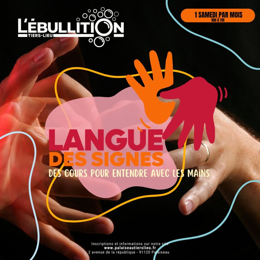 Un RDV mensuel d’une heure pour apprendre les bases de la langue des signes française. Vous apprendrez, de manière ludique, les premiers signes pour communiquer (alphabet, couleurs, chiffres et vocabulaire de base). Chaque séance, animée par Léa est articulée autour de jeux et de mise en situation pour apprendre dans la bonne humeur!