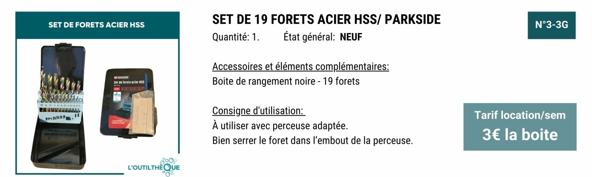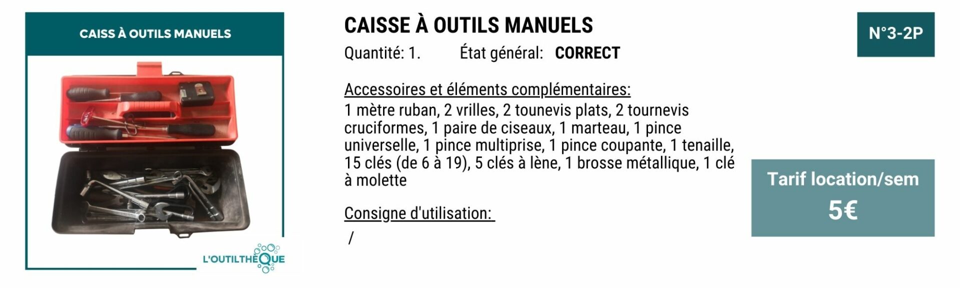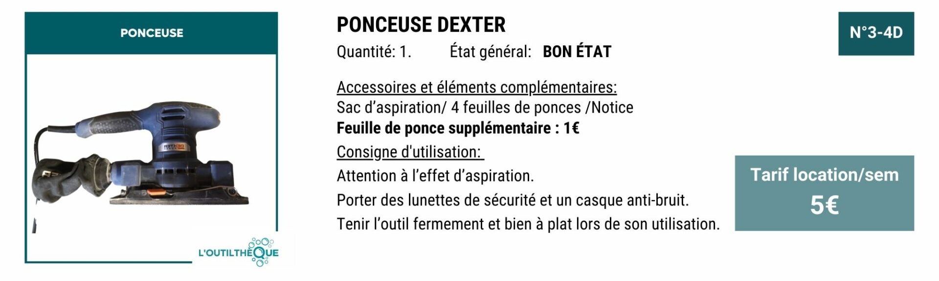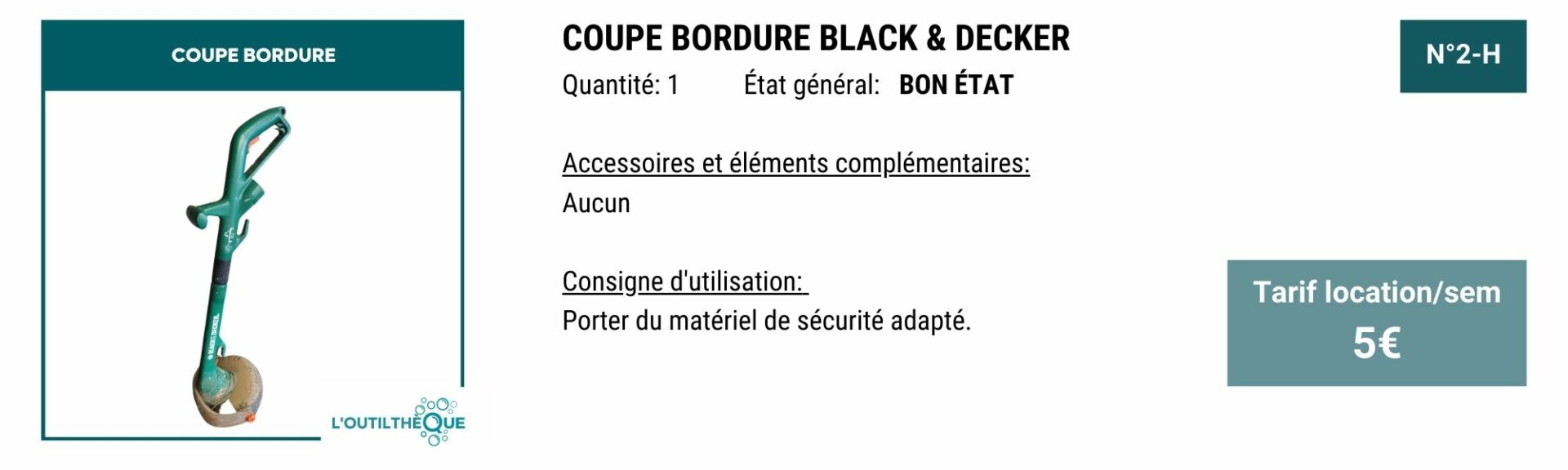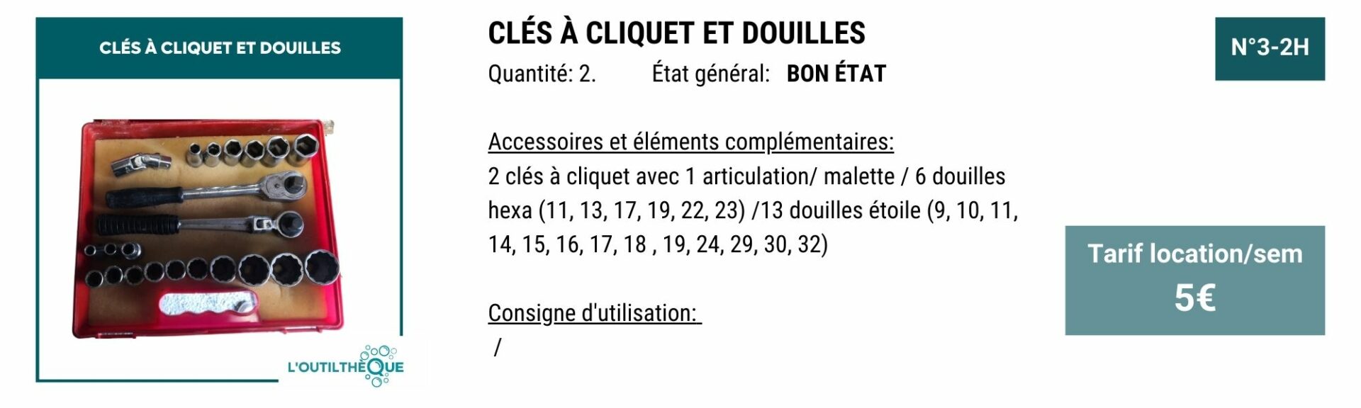 YOUPI! Pour vous remercier, en échange de 3H de bénévolat par mois, le service outilthèque est gratuit.