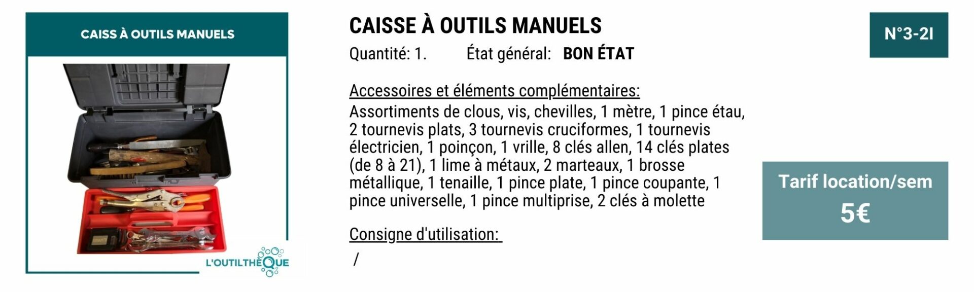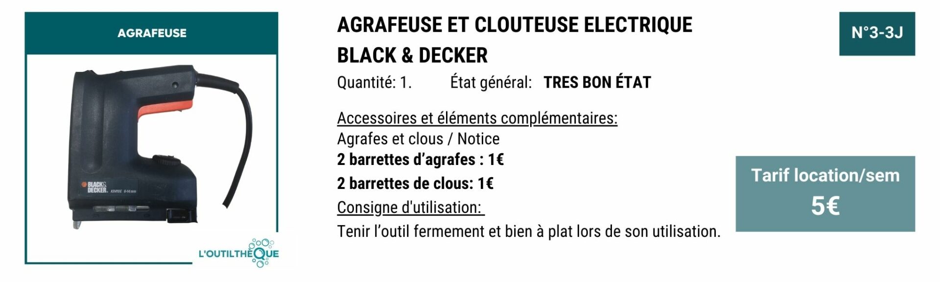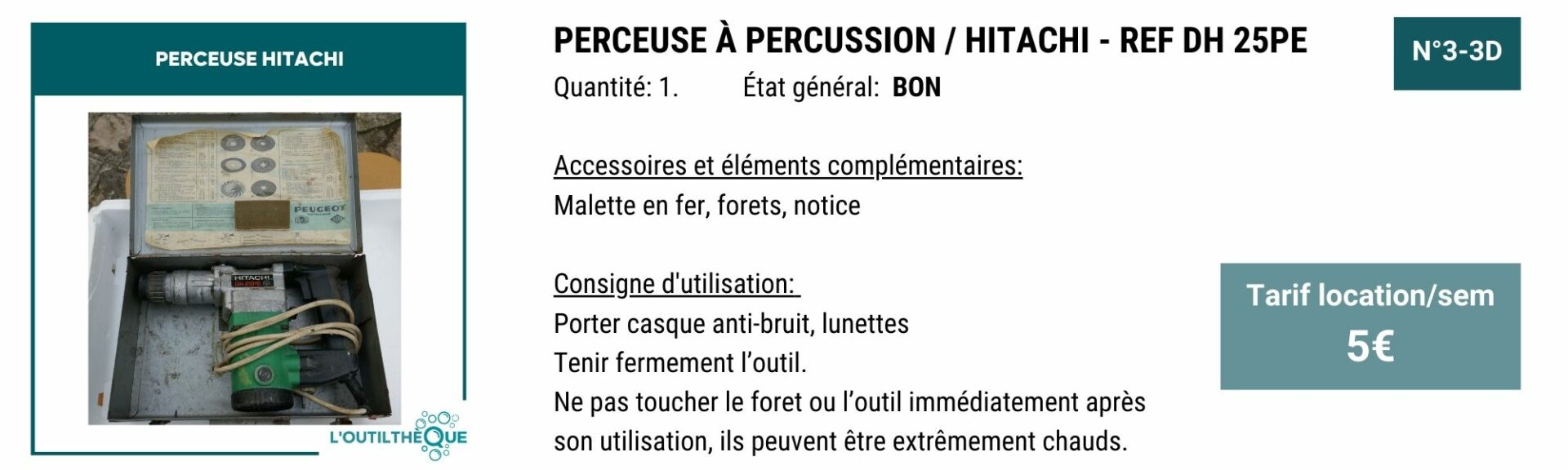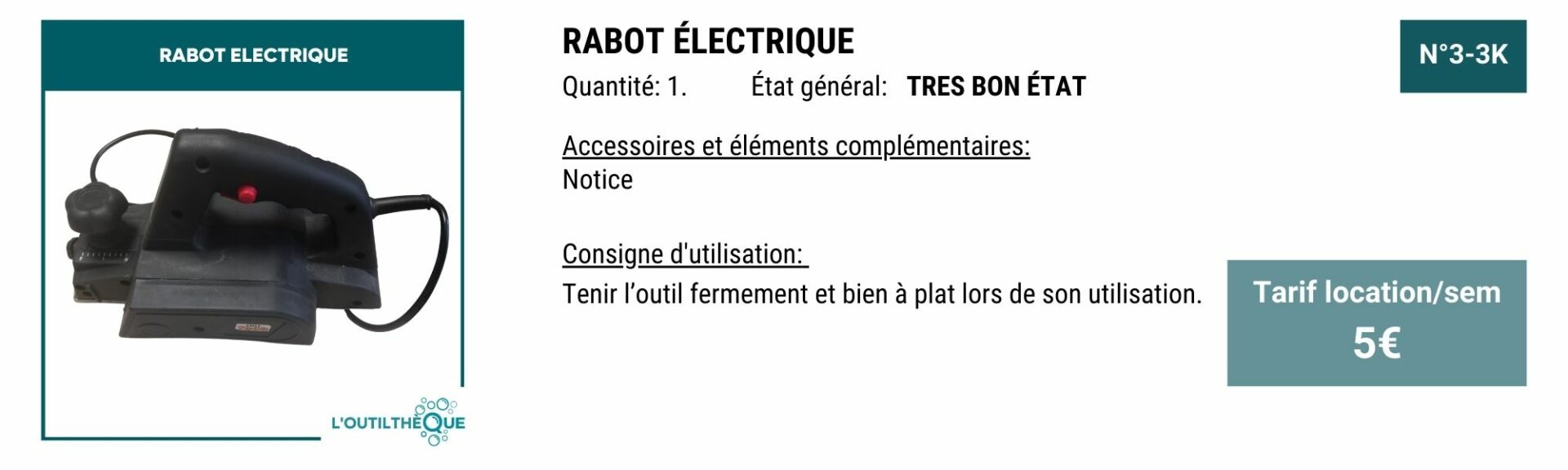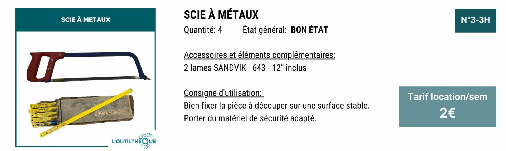YOUPI! Pour vous remercier, en échange de 3H de bénévolat par mois, le service outilthèque est gratuit.