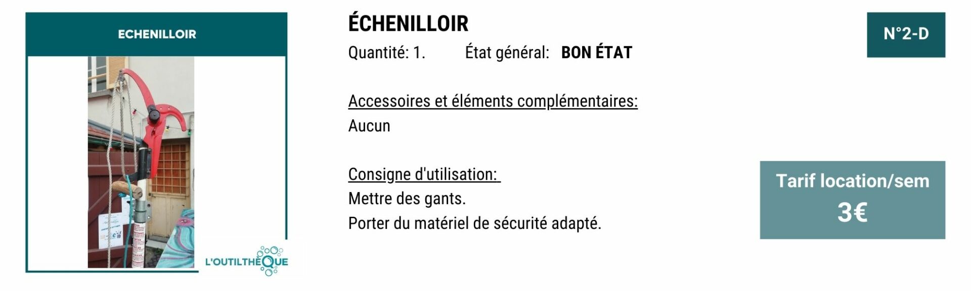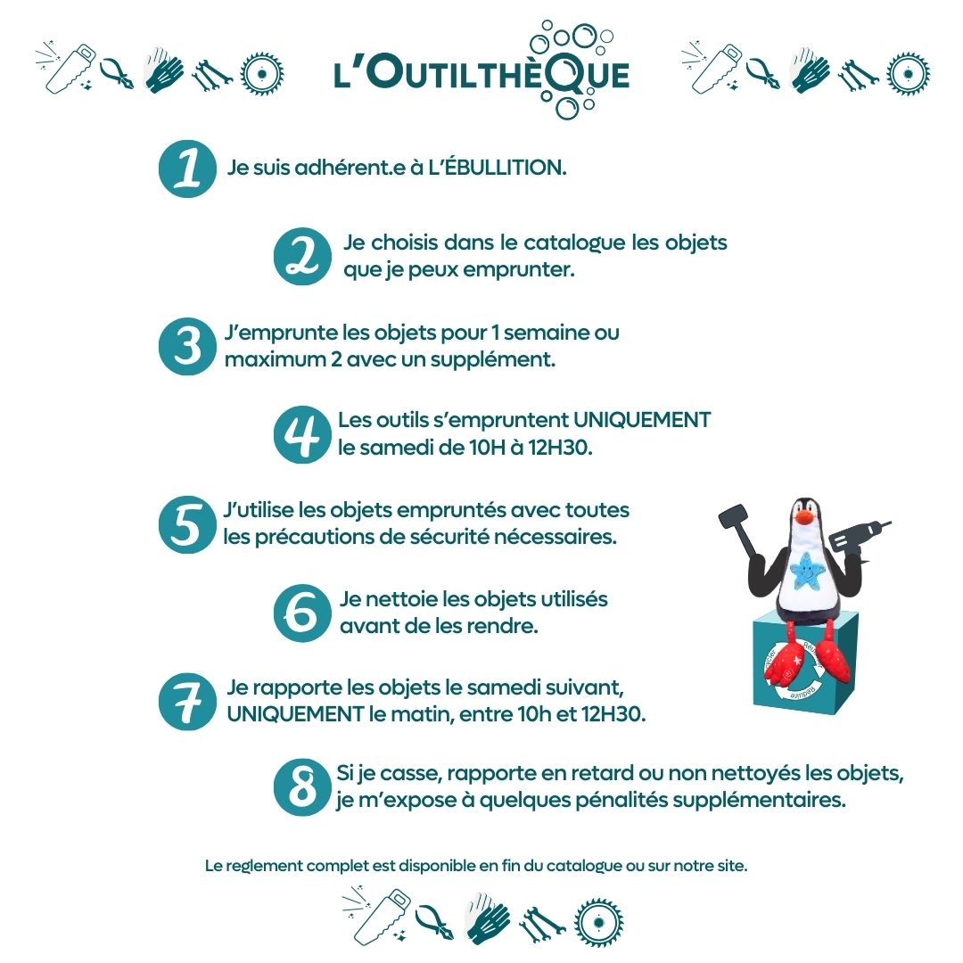 Ce projet d’outilthèque nous tient particulièrement à cœur car il correspond parfaitement aux actions que nous voulons mettre en place et les valeurs environnementales que nous défendons. Après plusieurs mois de travail acharnés, nous sommes heureux de vous présenter notre premier catalogue.
