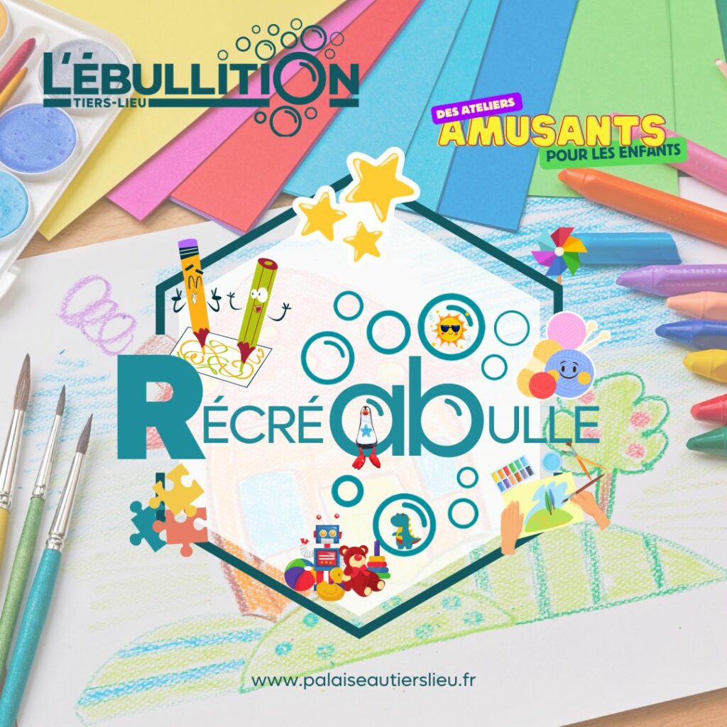 Chaque atelier RÉCRÉABULLE se compose d’un atelier créatif, d’un goûter et d’un temps libre autour des jeux/jouets/coloriages mis à disposition par le tiers-lieu.